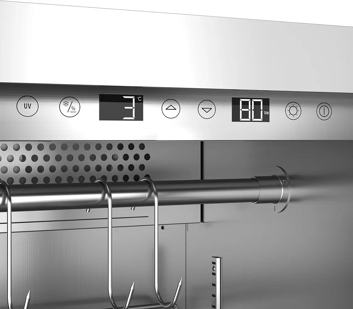 Ook de luchtvochtigheid in de DryAged Master is nauwkeurig te regelen. Dit kan worden ingesteld tussen 50 - 85% met behulp van het touch-bedieningspaneel. Dankzij de geïntegreerde H20-voorraadtank is dit zelfs mogelijk zonder aansluiting op de waterleiding of kraan.