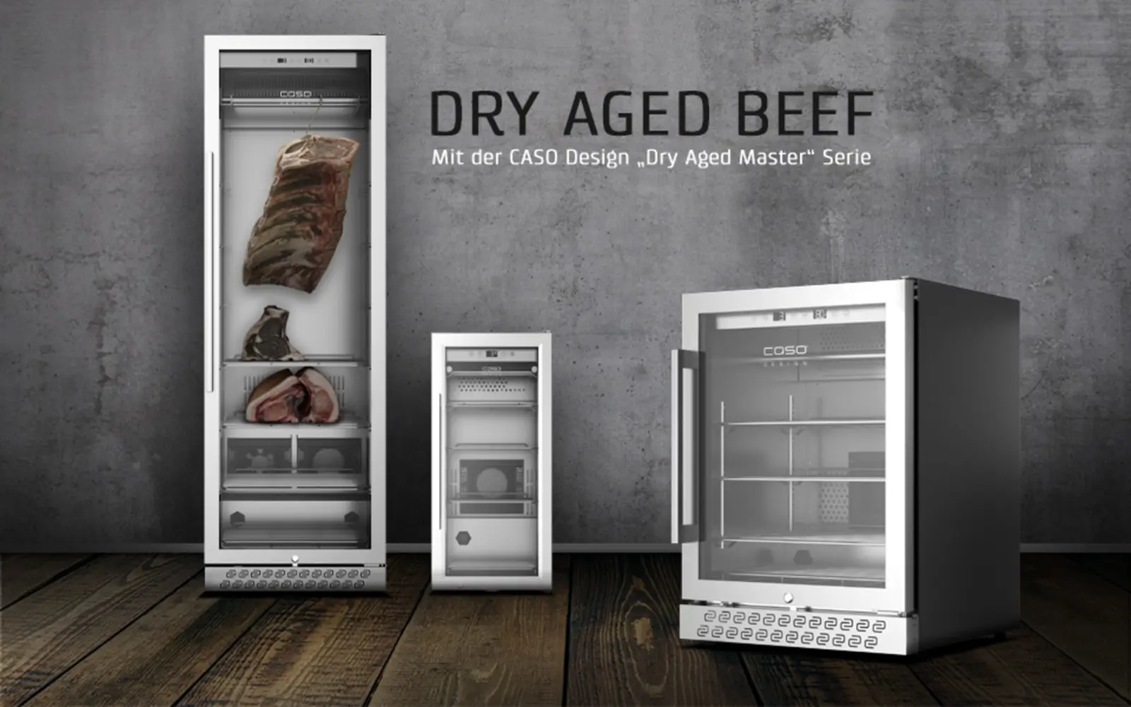 Met de hoogwaardige professionele rijpingskasten uit de DryAged Master productserie is CASO Design erin geslaagd om de perfecte voorwaarden te creëren voor het traditionele dry aging proces, zowel voor de commerciële sector als in particuliere huishoudens. Dankzij uitgekiende techniek zijn de rijpkasten van CASO Design bijzonder gebruiksvriendelijk en hebben ze alleen een stopcontact nodig om hun werk te doen. Perfect om thuis culinaire dry-aged specialiteiten precies naar wens te maken.