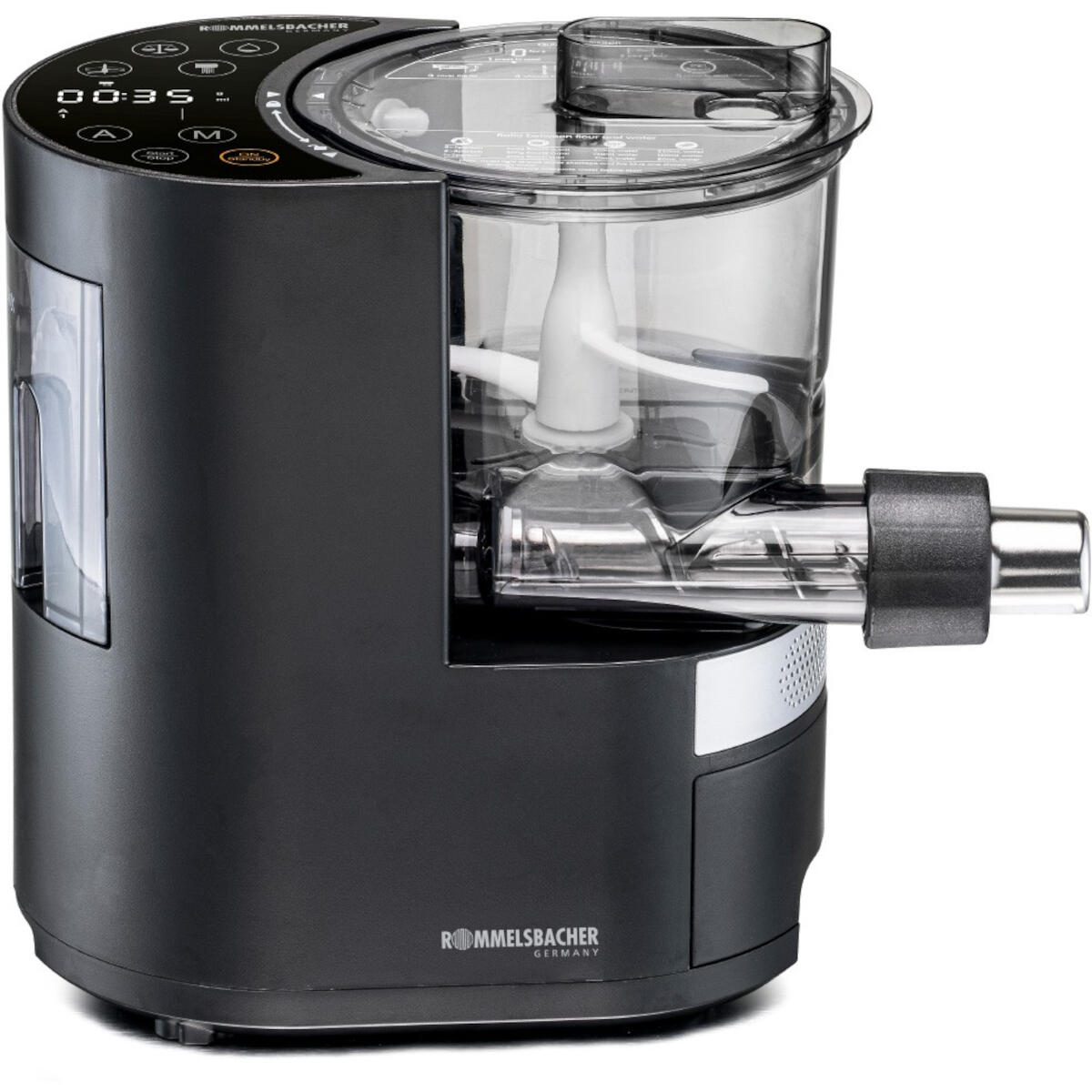 De Rommelsbacher Pastarella is dé alles-in-één oplossing voor verse, zelfgemaakte pasta. Met de mogelijkheid om tot 800 gram verse pasta te maken met ingrediënten afgestemd op jouw voorkeuren – of het nu volkoren, glutenvrij of met ei is – brengt deze pastamaker authentieke Italiaanse pasta rechtstreeks naar jouw keuken. Uitgerust met een geïntegreerde weegschaal, gecontroleerde watertoevoer en 7 pastavormen (matrices), regelt deze machine alles, van mengen tot persen, met één druk op de knop.