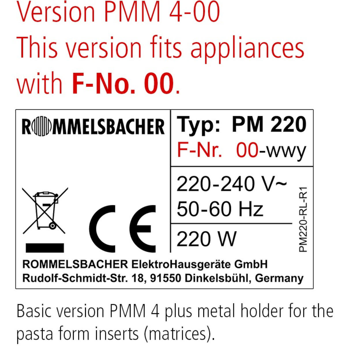 - Accessoireset (optioneel): Bevat 4 extra snijmallen voor nog meer pastavormen (modelnummers PMM 4-00 of PMM 4-01).
