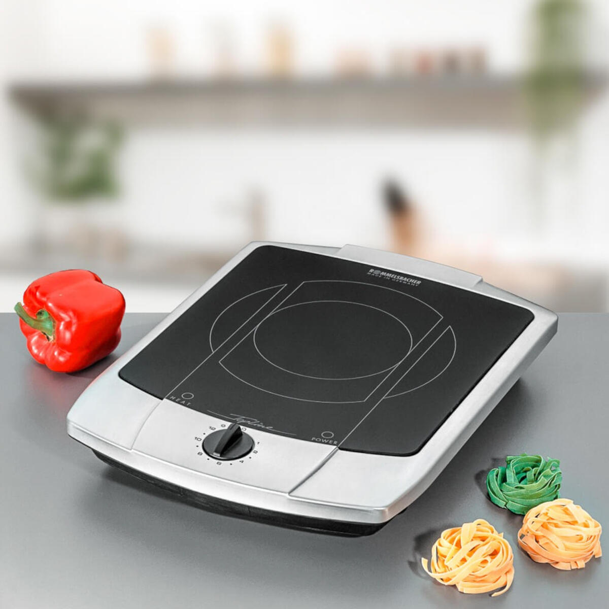 - Gebruiksvriendelijke bediening: Traploze vermogensregeling via een ergonomisch gevormde draaiknop maakt nauwkeurige warmte-instelling mogelijk, ondersteund door een automatische kookfunctie.