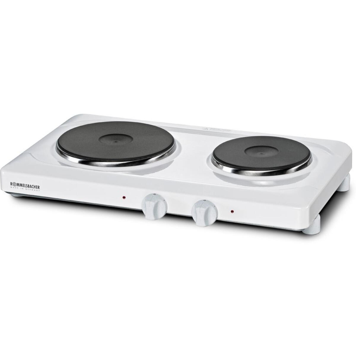Rommelsbacher THS 2015 – Dubbele kookplaat – Gietijzeren kookzones – Twee zones (145 mm Ø & 180 mm Ø) – 15-minutentimers – Wit geëmailleerde behuizing