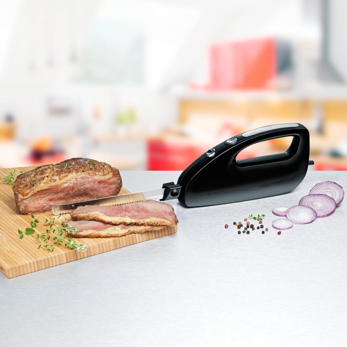 Snijd moeiteloos brood, vlees, gevogelte, gebak en diepvriesproducten met het ergonomische, hoogwaardige elektrische mes EM 150 – ontworpen voor dagelijks gemak en professionele resultaten.