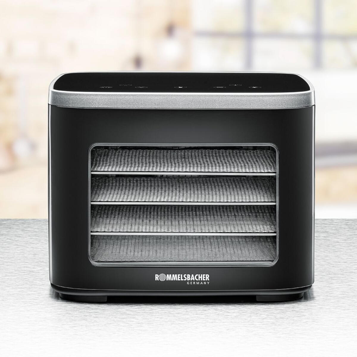 Rommelsbacher DA 450 - Mini Droogmachine - Cool-Touch Behuizing - 5 Roestvrijstalen Lades 23,5 x 18 cm - Instelbare Temperatuur 35 °C–80 °C - 99-Uur Timer & Warmhoudfunctie - LCD Touchbediening