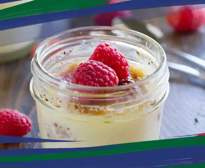 Sous vide frambozen crème brûlée cheesecake in potjes