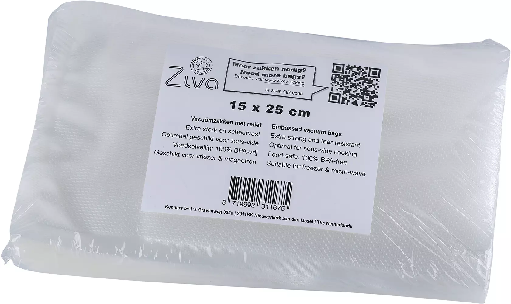 Neem geen genoegen met minder—kies voor Ziva Geëmbosseerde Vacuümzakken om je voedsel langer vers te houden, verspilling te verminderen en je sous-vide kookervaring te verbeteren. Bestel nu en ervaar het verschil in kwaliteit, smaak en gemak!